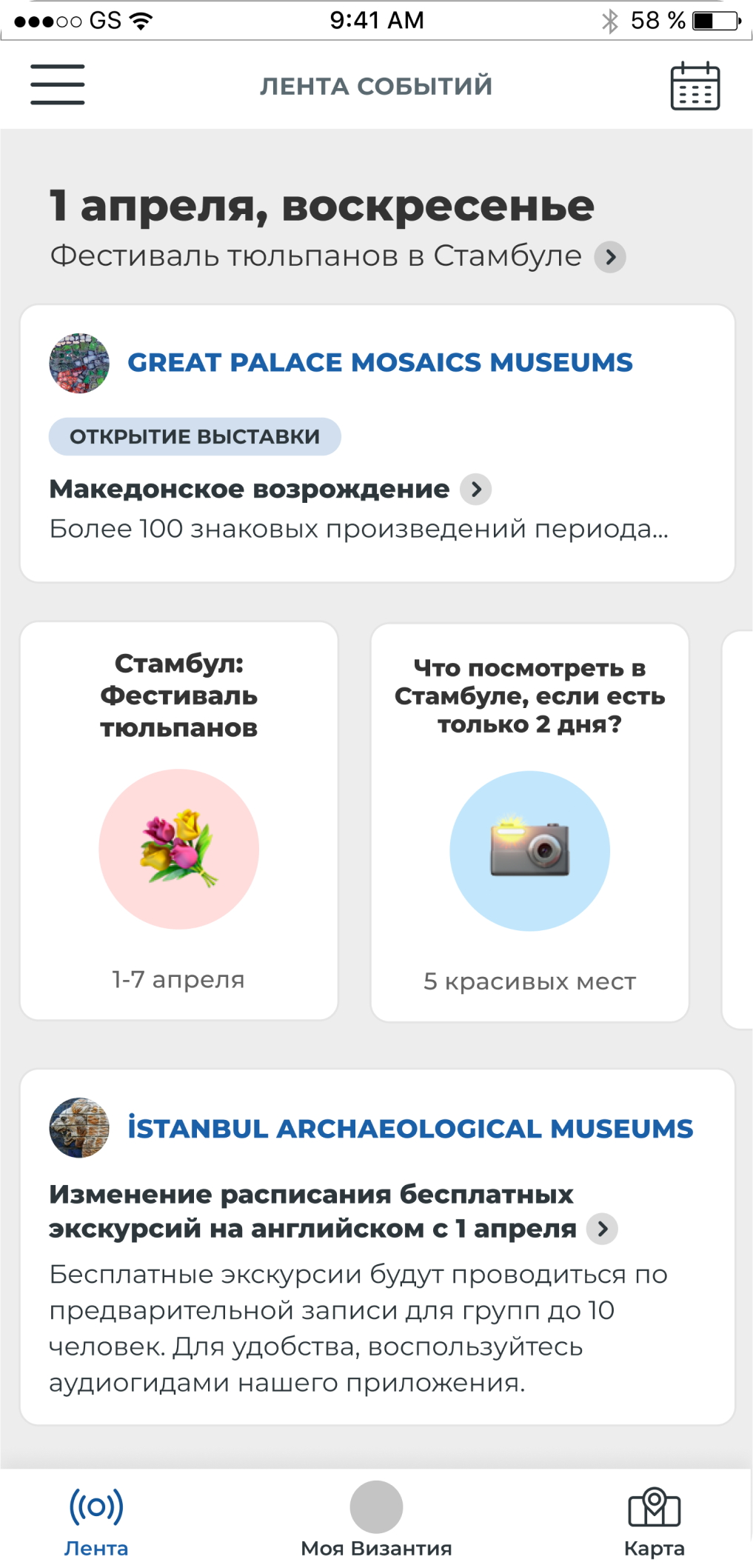 The application will have a news feed that can be filled in by representatives of the Russian Embassy, the Ministry of Tourism and Culture. If desired, any object can have its own heading in this feed (for example, museum news).