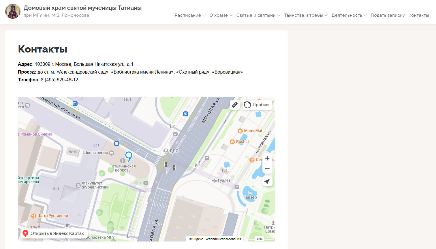 Поздравляем Татьянинский храм при МГУ им. М. В. Ломоносова с переходом на новый сайт!